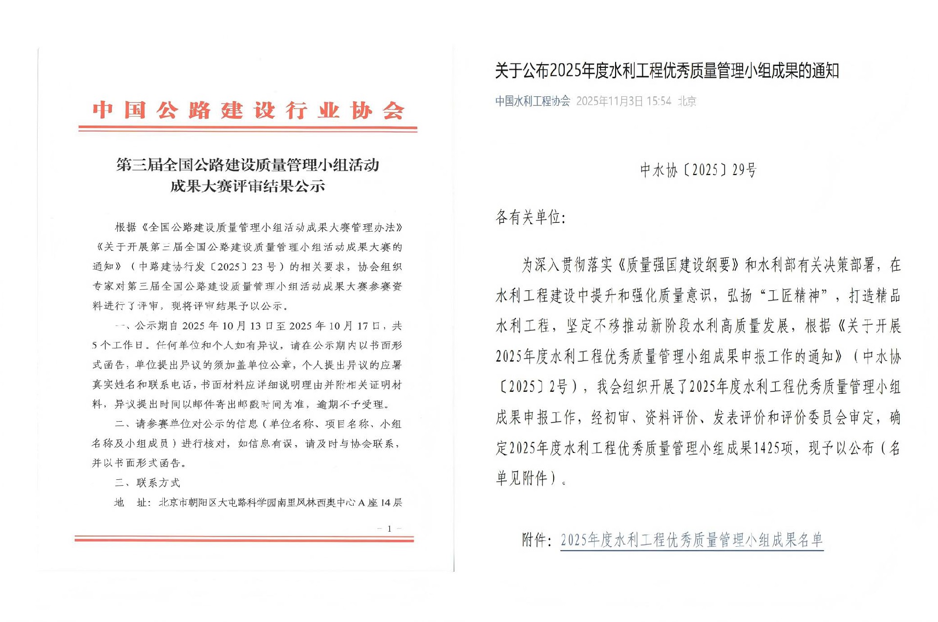 近日,中國(guó)公路建設(shè)行業(yè)協(xié)會(huì)、中國(guó)水利工程協(xié)會(huì)先后公布了第三屆全國(guó)公路建設(shè)質(zhì)量管理小組活動(dòng)成果評(píng)審結(jié)果和2025年度水利企業(yè)質(zhì)量管理小組競(jìng)賽活動(dòng)結(jié)果?!啊ぁぁ?/p>